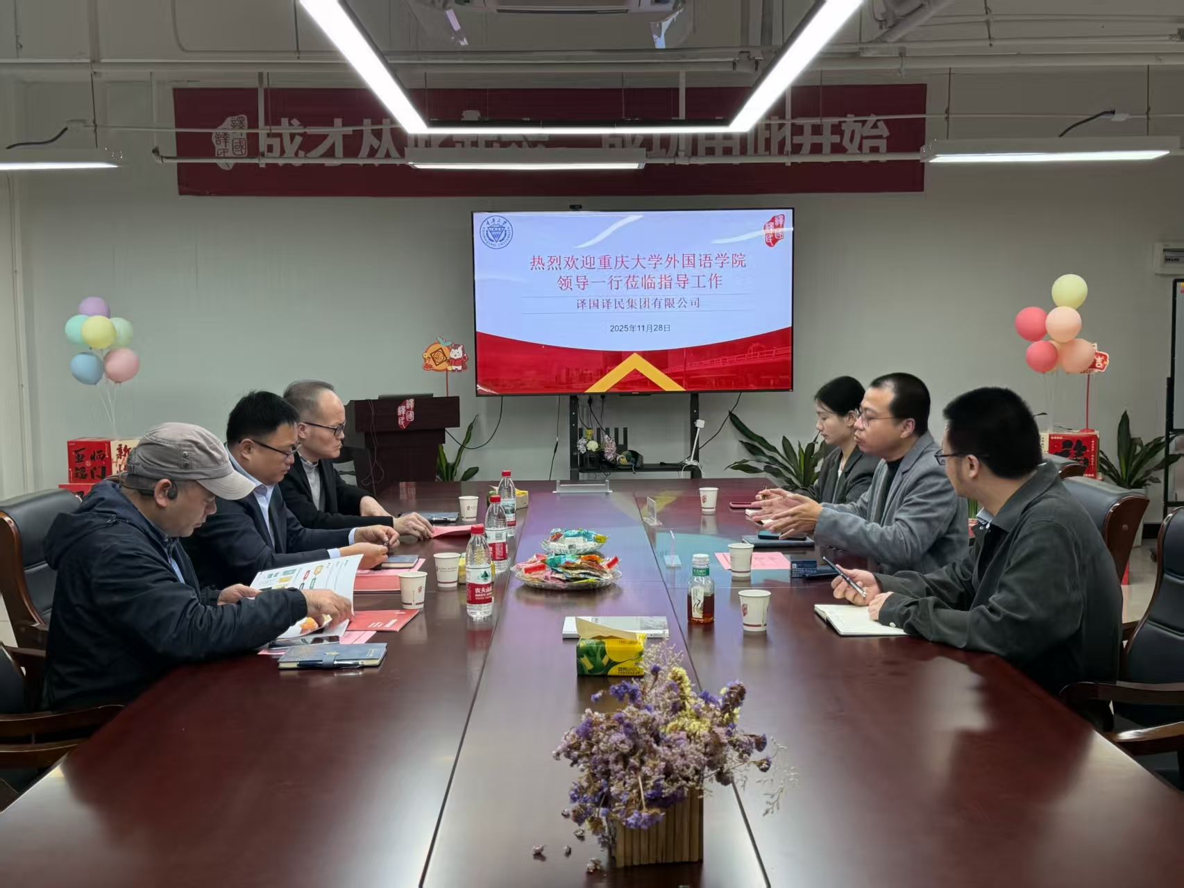 为深入贯彻国家关于推动产学研融合、促进高校毕业生高质量就业的决策部署,2025年11月28日,重庆大学外国语学院院长莫启扬教授、研究生教育负责人刘扬教授、MTI中心负责人晏生宏副教授一行赴福州译国译民集团总部开展访企拓岗专项调研。译国译民集团总经理林世宾、西部片区总经理吴强等出席座谈。双方聚焦语言服务行业前沿,围绕协同科研攻关、深化项目合作、推动学术出版等议题展开交流,旨在构建校企协同育人新机制,共同培养服务国家国际传播能力建设的高层次、应用型翻译人才。