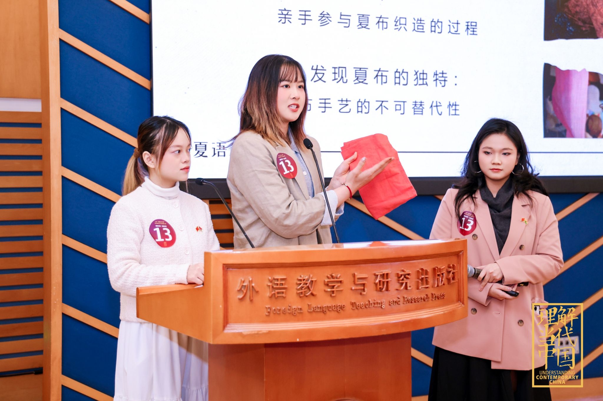国际中文组留学生短视频赛项以“美丽中国”为主题,重点考察选手的文化理解、创意表达与跨文化传播能力。我校李昀臻、方芳、王丽俐团队的作品《夏语书》聚焦国家级非物质文化遗产“夏布”,通过拍摄夏布制作过程,生动呈现苎麻从植物到坚韧织物的转化历程,并捕捉民间织布匠人的真实劳作场景,记录传统技艺与手艺人的坚守。比赛现场,她们用流利中文清晰阐述选题缘由、拍摄历程与创作思考,从容回答夏布保存方法、重庆非遗保护举措等问题,展现出扎实的中文运用能力、文化感知力与跨文化沟通意识。