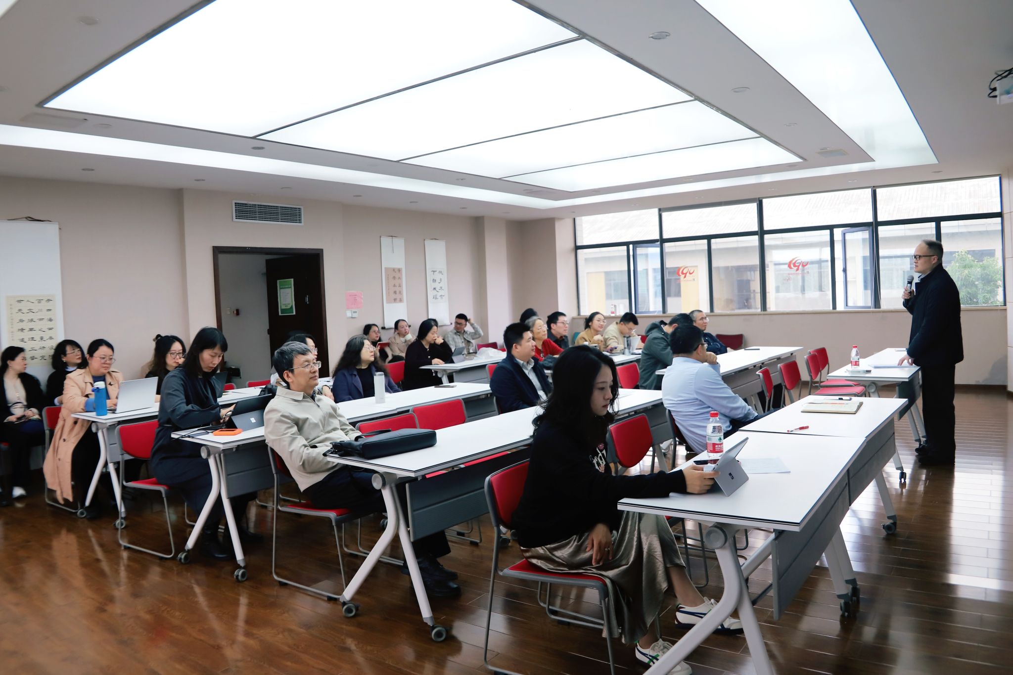 刘扬教授首先围绕研究生培养工作,深入解读多项学校规范文件。他强调,学院将持续规范教学管理、加强关键环节督导,以高标准贯穿育人全链条,坚持过程管理协同优化、环环相扣,为研究生培养质量提供有力支撑。