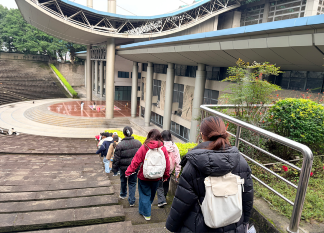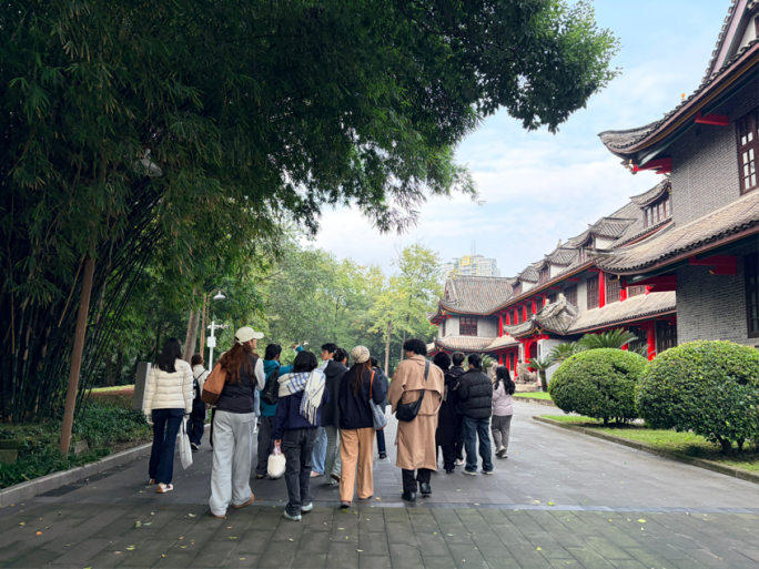 为深刻领会习近平总书记在纪念中国人民抗日战争暨世界反法西斯战争胜利80周年大会上提出的重要论述,外国语学院研究生于2025年11月23日前往重庆大学A校区,参与“‘红岩星火,青年问道’重庆大学研学活动人文学部专场”活动,在校园内留存的古建筑间漫步,聆听重大历史的回响。