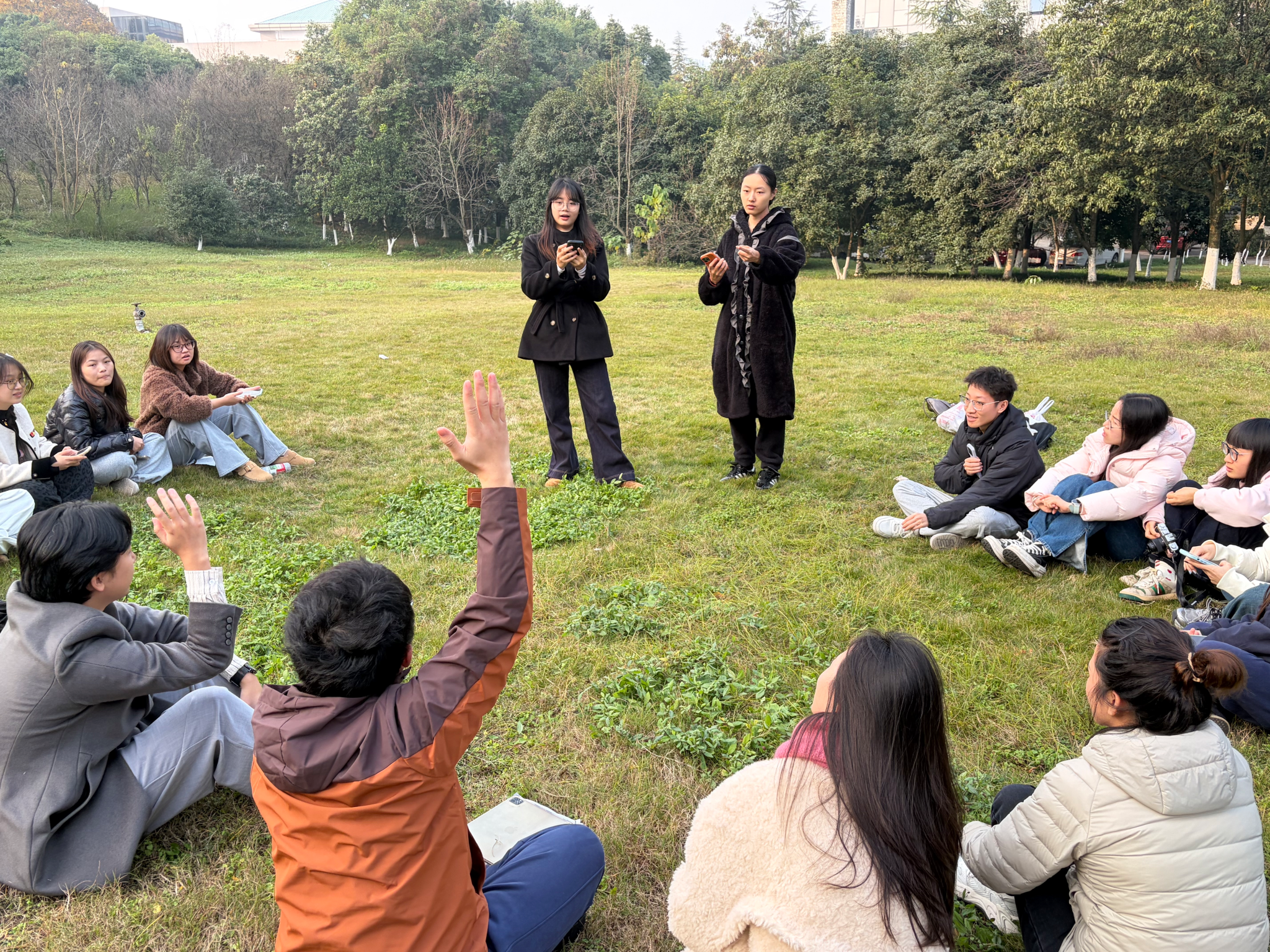为深入推进党史学习教育常态化长效化,创新党员教育形式,增强党组织凝聚力和战斗力,2025年12月18日下午,重庆大学外国语学院学硕一支部在校园草坪成功举办了“重温红色历程·凝聚奋进力量”主题党日活动。本次活动突破传统学习模式,将理论学习与趣味互动深度融合,通过知识竞答、红歌传唱、团队协作游戏等多元化形式,让党史学习教育真正“活”起来、“动”起来,成为一堂有温度、有深度、有力度的生动党课,得到了支部全体党员的积极参与和高度评价。