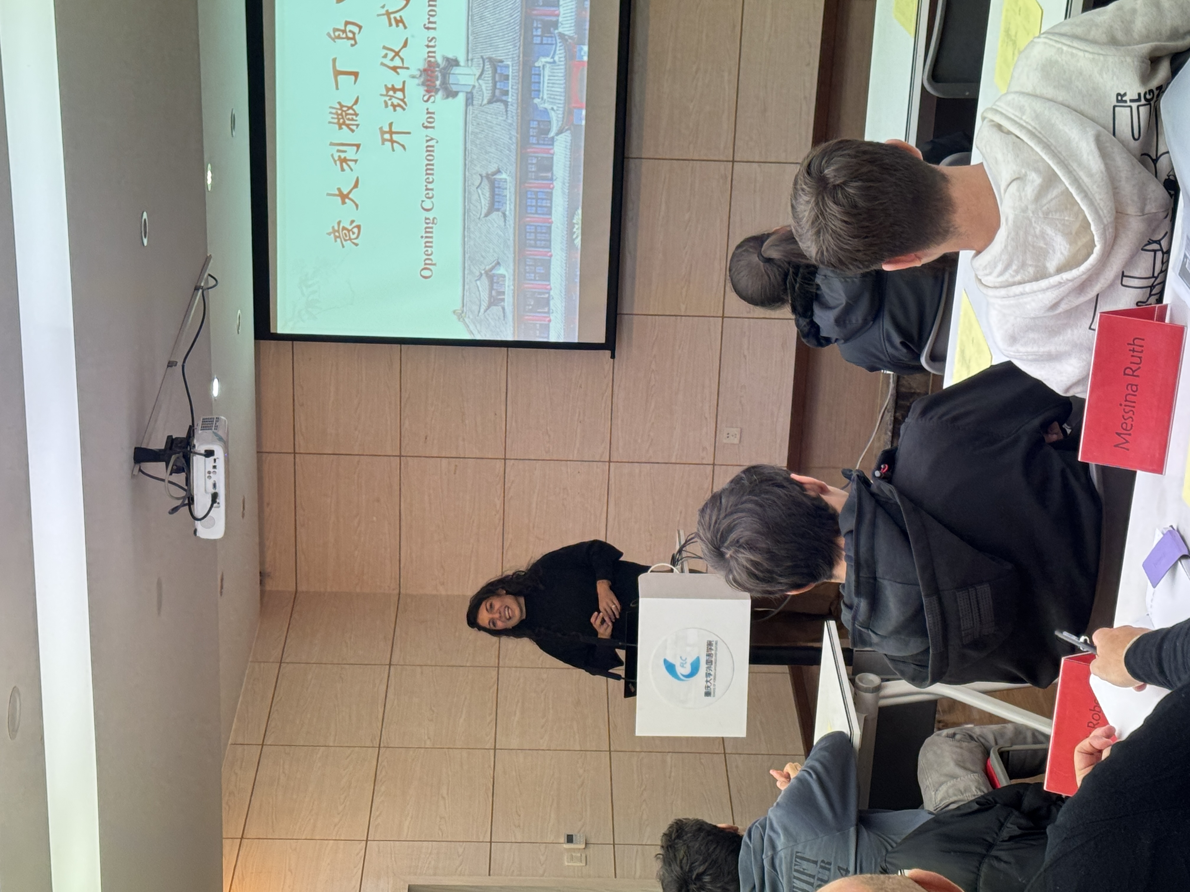 仪式现场,杨小虎副院长代表学院对意大利撒丁岛中学生团队的到来表示热烈欢迎。他表示,重庆大学始终致力于国际教育交流与合作,此次活动为两国学生搭建了文化互通、友谊联结的重要平台,期待同学们在渝期间深度感受重庆的城市魅力与校园文化,收获充实而珍贵的交流体验。随后,郑晓红老师详细讲解了团队本次交流的核心日程,涵盖校园体验、文化探访、互动实践等多个环节,清晰的安排让同学们对后续活动充满期待。