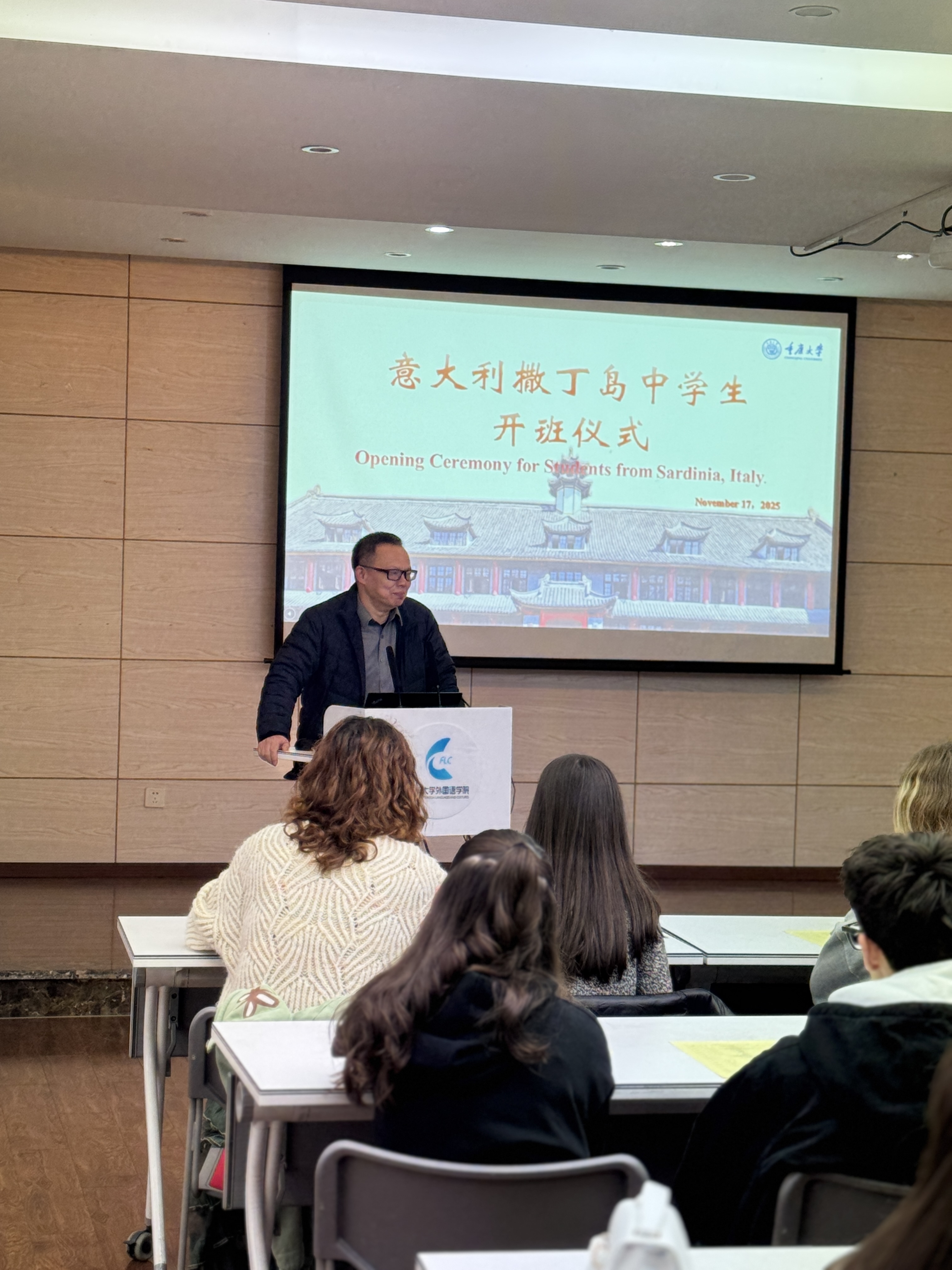 2025年11月17日,意大利撒丁岛中学生交流团队开班仪式在重庆大学顺利举办。重庆大学外国语学院副院长杨小虎出席仪式,与意大利带队老师及全体学生共同开启本次交流之旅。